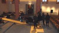 Nun heißt es den Abendmahlstisch, der ja ein Gewicht von ca. 660 kg hat, auf das Podest im Chorraum zu stellen.