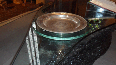 Bei meinem heutigen Besuch wollte ich mich den Füßen des Abendmahlstischs widmen. Doch bei Betrachtung des Kunstobjekts entdecke ich eine mysteriöse Öffnung am Fundament - ein Geheimfach? Was verbirgt sich darin?