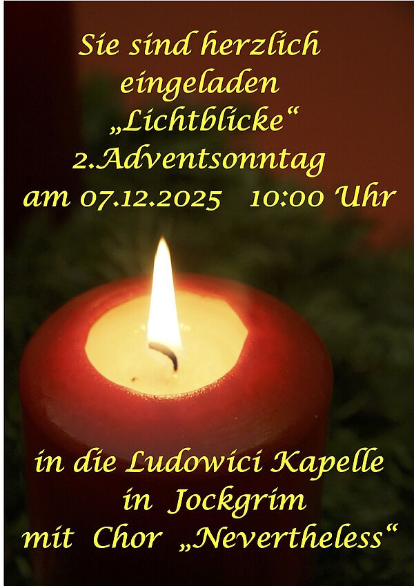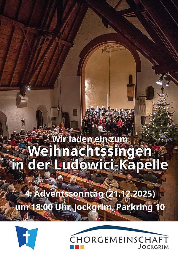 Am 4. Adventssonntag (21.12.2025) laden wir wieder zum Weihnachtssingen in der Ludowici-Kapelle ein. Dieses Jahr gestaltet der Voice & Stage Show Chor der Chorgemeinschaft Jockgrim unter der Leitung von Nina Schromm den Abend.