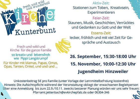 Das Team der Kirchenmäuse lädt wieder alle Kinder von 5 bis 10 aus den Kirchengemeinden Jettenbach, Hinzweiler, Rothselberg und Wolfstein ein.