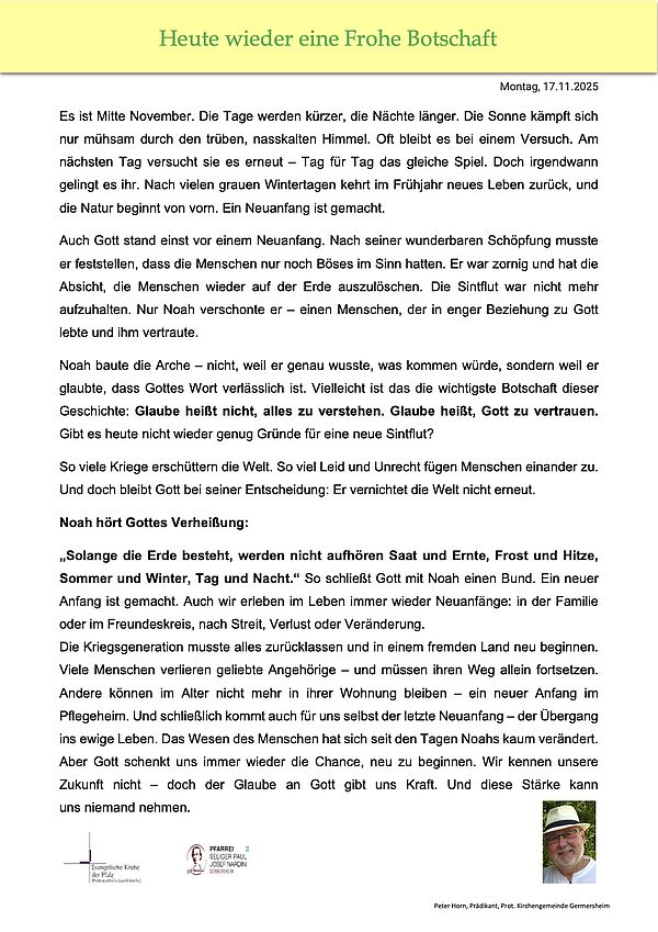 Startseite / Andachten & Gottesdienste / Frohe Botschaft