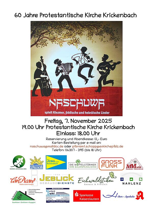 Zufahrt und Zuweg zur Protestantischen Kirche Krickenbach - bitte die blaue Schrift anklicken!