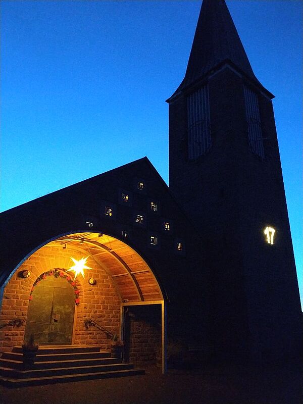 14. Adventsfenster - Vorplatz Protestantische Kirche Krickenbach