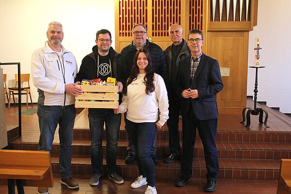 Als im Sommer 2023 ein massiver Feuchtigkeitseinlass an der Giebelwand der Protestantischen Kirche Schopp festgestellt wurde, war die Bestürzung im Presbyterium groß. Gerade war die aufwändige Fassadensanierung der Kirche abgeschlossen. Die Ursache für die feuchte Wand war eine über die Jahre hin verstopfte Regenrinne, die durch ein Dach-Kupferblech über dem Ortgang der Giebelwand versteckt ist. Niemand wusste von dieser Rinne. Gleich wurde ein von dem Fundraisingbeauftragten des Protestantischen Kirchenbezirks an Alsenz und Lauter, Herrn Ronald Rosenthal online eingerichteter Spendenaufruf gestartet. Der Aufwand hat sich gelohnt. Es kam eine stattliche Spendensumme zusammen, die jedoch die Kosten für die Sanierungsarbeiten nicht voll decken konnte. Zu Beginn des Jahres 2026 erhielt Ortspfarrer Wolfgang Hust die Nachricht der ortsansässigen Sanierungs- und Malerfirma Thomas, dass diese die Arbeit komplett und kostenlos für die Kirchengemeinde übernehmen würde. Die Überraschung war groß, die Freude umso mehr über diesen Synergieeffekt des Spendenaufrufs. Im Februar konnten die Arbeiten begonnen und innerhalb von 3 Wochen abgeschlossen werden. Eine große Wandfläche im Giebelbereich wies schadhaften Putz auf. Dieser wurde fachmännisch saniert. Darüber hinaus erhielten die Seitenwände des Langschiffs sowie die Betonrippen im unteren Bereich einen frischen Anstrich mit Spezialfarbe. Bei einem Fototermin überreichten die Schopper Presbyter den fleißigen Mitarbeitern der Firma Thomas, Frau Müssiggang und Herrn Steigner, eine Präsentkiste als Dankeschön. Herzlichen Dank allen, die diese großartige und hilfreiche Aktion unterstützt haben, besonders der Firma Thomas mit ihrem Geschäftsführer Uli Becker sowie Herrn Rosenthal als Initiator und Unterstützer der Spendenaktion. Die bereits eingegangenen Spenden für die Giebelwandsanierung fließen nun nach Rücksprache mit den Spender*innen in die allgemeinen Instandhaltung der Schopper Kirche.