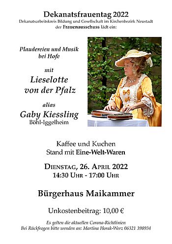Annette Postel, deutsche Entertainerin, Musikkabarettistin, Moderatorin, Chansonsängerin („Chanteuse“) und einzige deutschsprachige Operncomedienne (Opernsängerin mit Operncomedy, Musikkabarett und Opernparodie) aus Edenkoben hatte Vieles zum Thema Frauen im Repertoire. Begleitet wurde Frau Postel von Peter Schnur, Pianist, aus Hamm am Rhein.