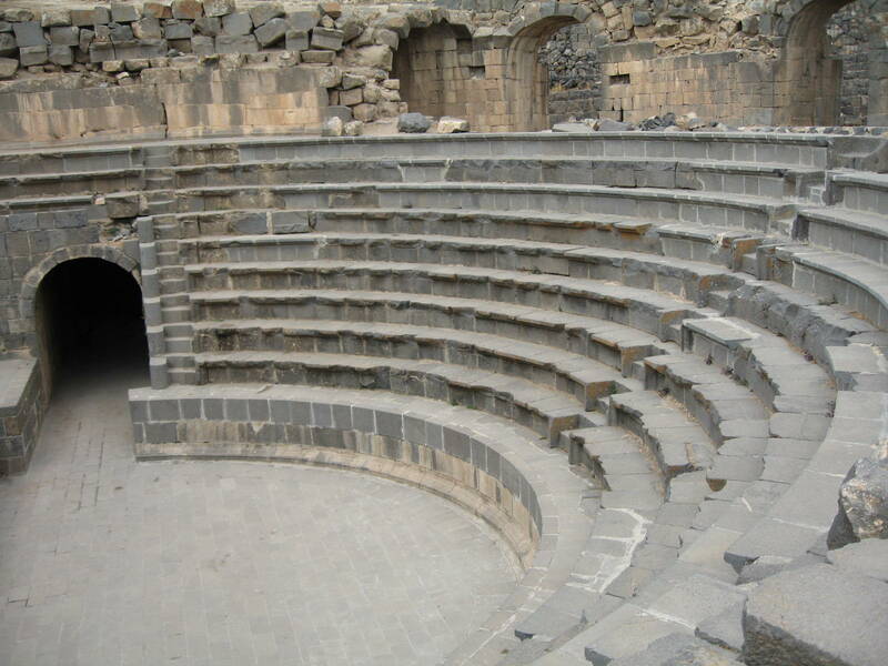 Fahrt zum Hauran, dem südsyrischen Basaltplateau: Schaba, das antike Philippopolis mit Kolonnadenstraßen, Theater, Thermen und Museum; Qanawat, als Kanatha einst Glied der Dekapolis, mit Serail und Peripteros-Tempel; das weitläufige Areal von Bosra, dessen Bauten aus schwarzem Basalt errichtet waren und teilweise gut erhalten sind. Rückfahrt nach Damaskus.