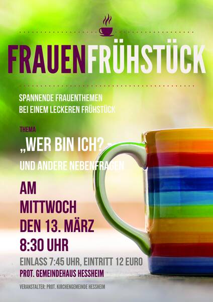 Im Mittelpunkt des Frauenfrühstücks der Prot. Kirchengemeinde Heßheim am Mittwoch, den 13. März 2024 stehen selbstverständliche, recht alltägliche Fragen. Sie sind keine Tabus und doch machen sie meist ratlos. Es sind Fragen nach Leben und Tod, nach Sinn und Ziel des Menschen. "Es geht um mich, um meine Echtheit, um Gott und die Welt.", betonen die Veranstalterinnen.