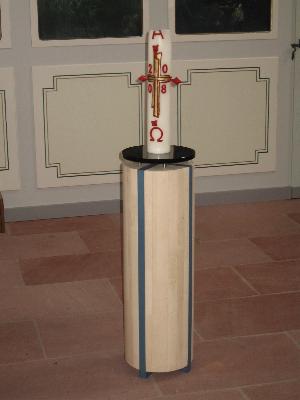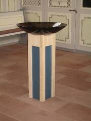 Neuer Taufstein und Osterkerzenständer in der Ingenheimer Kirche Nun stehen sie endlich an ihrem Platz rechts und links neben dem Altar der Ingenheimer Kirche, Taufstein und Kerzenständer, die im Vorfeld vieler Diskussionen bedurften.