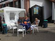 Bereits nach der Eröffnung Freitagabends wurden in der Mühlhofenerstraße vor dem Anwesen von Stefan Kaiser in einem Pavillon leckere Waffeln angeboten.