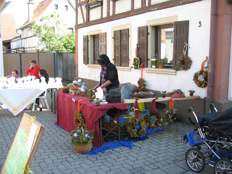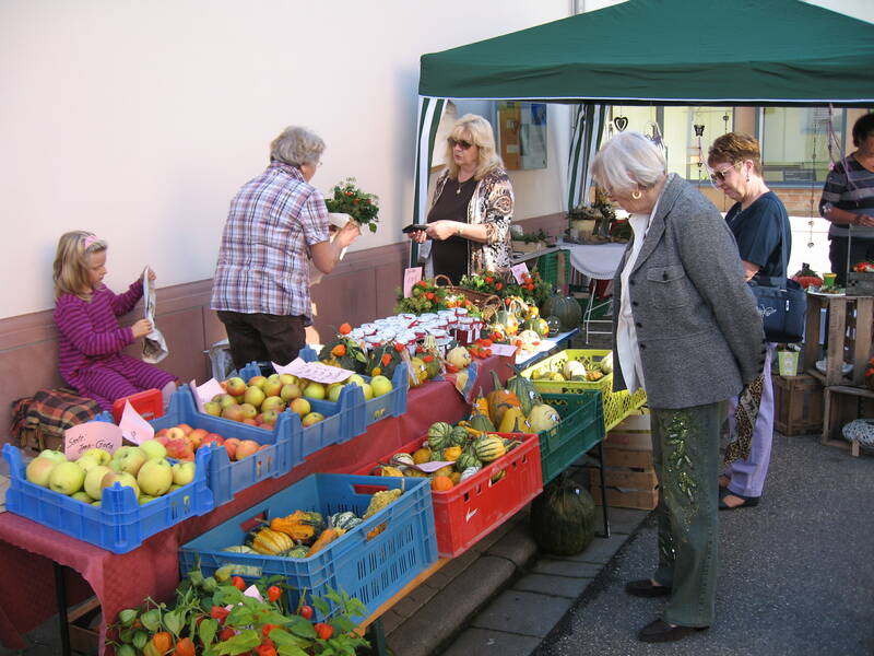Die Marktbeschicker priesen auch dieses Jahr wieder ein vielfältiges Angebot wie Handarbeiten, Blumengestecke, Schmuck, Liköre und vor Ort gebackenes Brot, sowie Erzeugnisse aus Feld und Garten an. Im Gemeindhaus konnten sich die Kinder mit basten und malen vergnügen.