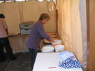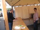 Die Vorbereitungen wurden vom Festausschuß auch in diesem Jahr wieder in gewohnter Weise bestens organisiert, so dass alles reibungslos ablief. Bereits am Samstag begann bei wolkenverhangenem Himmel und bei leichtem Regen, Transport und Aufbau unseres Verkaufsstandes. Dank einer Spenderin konnte auch als Abschluß "Richtfest" gefeiert werden. Der Saal im Gemeindehaus wurde von fleißgen Helfern für Mittagsesssen und Kaffetrinken am Sonntag vorbereitet. In der Kirche wurden Obst und Gemüse als Zeichen des Erntedankes aufgebaut.