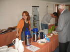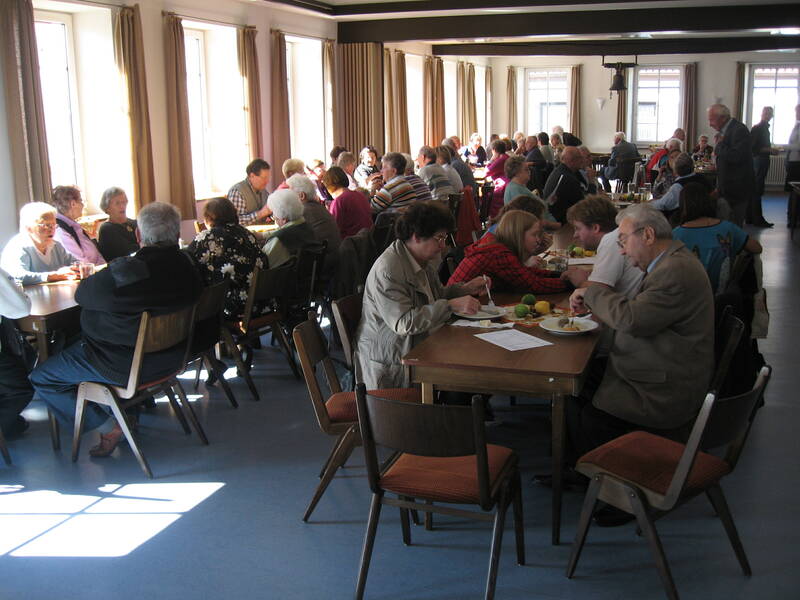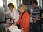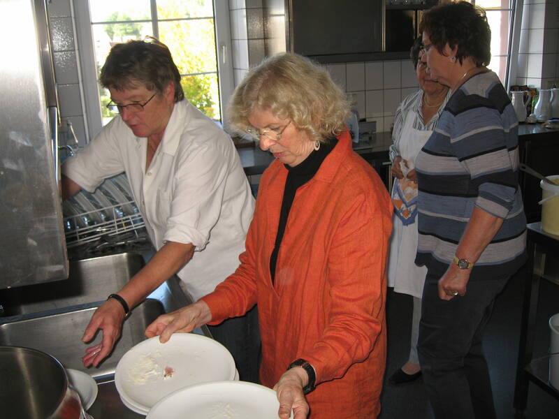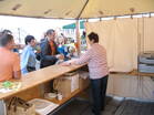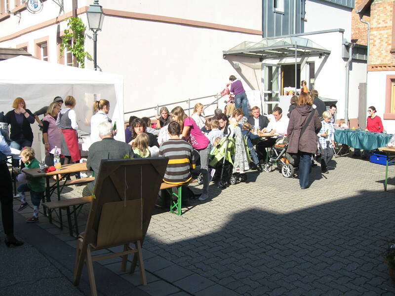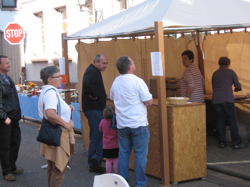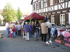Nach dem Gottesdienst, die Bratwurst und die Steaks drohten schon zu verbruzzeln, füllte sich die Kirchstraße und ein reges Markttreiben begann. Auch der Gemeindesaal in dem die bewährten "Pälzer Fläschknepp" und Wachholderschinken angeboten wurden, war bald gut gefüllt. Die Schankwirte und auch die Kaffee- und Kuchenverkäuferinnen versorgten die Gäste mit kühlen Getränken und vorzüglichem Kuchen.