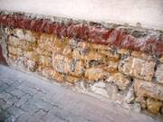 Der neue Sandsteinsockel ermöglicht der Kirche Feuchtigkeit nach außen abzuleiten und so den Innenraum von Salpeter freizuhalten.