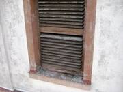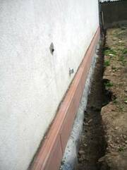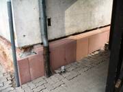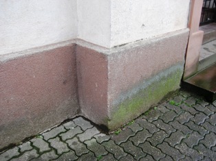Um die im Mauerwerk, das keine Horizontalsperre besitzt, aufsteigende Feuchtigkeit nach außen ableiten zu können, muss der Kunstharzputz vom Sockel entfernt werden.