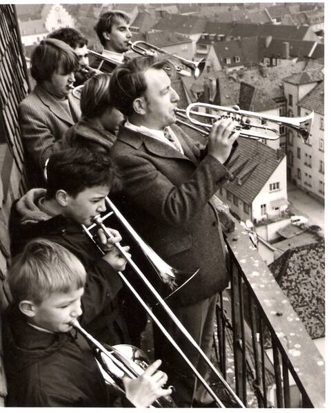 Im Sommerhalbjahr gibt es an einigen Samstagen zwischen 11:30 Uhr und 12 Uhr ein kleines Konzert aus luftiger Höhe des Stiftskirchenturms. Beim "Turmblasen" wirken außer der Landauer Bläserkantorei auch andere Posaunenchöre aus der Region mit