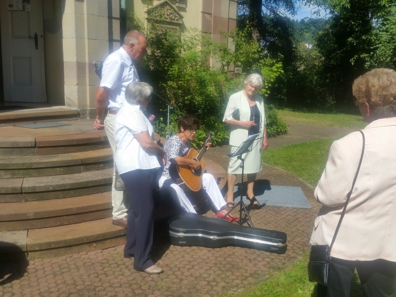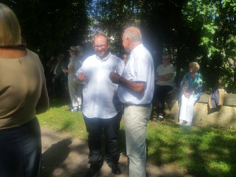 Nach dem Gottesdienst fand vor der Kirche ein kleiner Umtrunk statt, so dass sich jeder persönlich von Christoph de Araujo verabschieden konnte, den wir im Laufe der vergangenen Monate in unser Herz geschlossen haben.