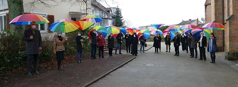 Geschenkt bekamen alle einen bunten Regenschirm als Symbol für die Gegenwart Gottes.
