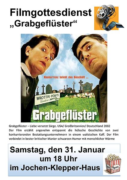 Am Samstag, den 31. Januar 2026 findet im Jochen-Klepper-Haus in Kirkel-Neuhäusel ein Film-Gottesdienst statt. Dieser beginnt um 18 Uhr. Gezeigt wird der Film „Grabgeflüster“.