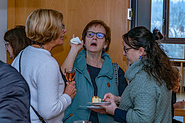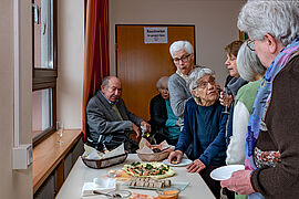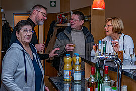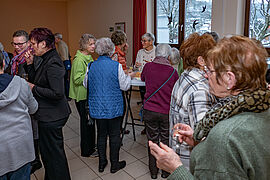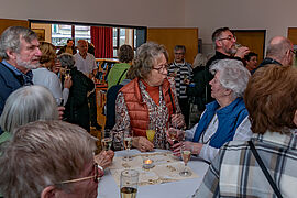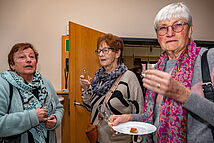Die zahlreichen Gottesdienstbesucher fühlten sich wohl und konnten sich bei einem Gläschen Wein und gutem Essen gemütlich unterhalten. Und über Gott und die Welt plaudern.