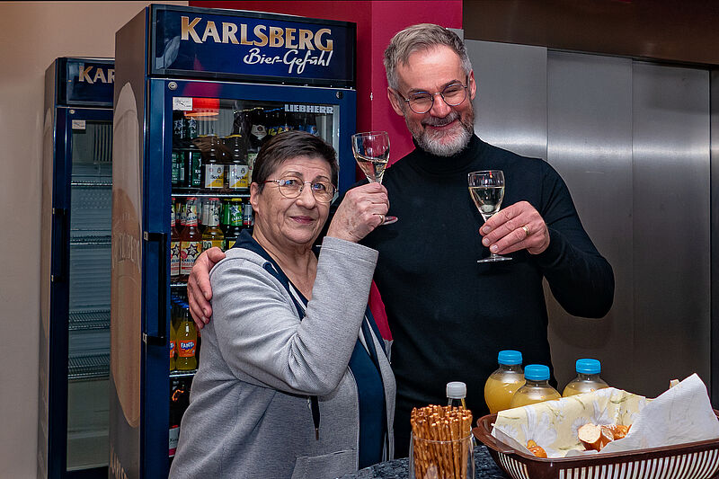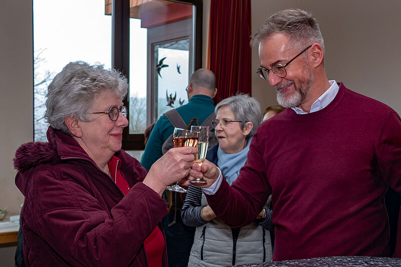 Im Anschluss an den Gottesdienst konnten wir alle einem Glas Sekt mit unserem Pfarrer anstossen. Die Frau Pfarrerin konnte leider nicht dabei sein.