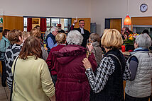 Die Presbyterinnen Iris Peitz und Marion Kiefer überreichten Ilmar Kieckhöfel zum kleinen Jubiläum einen wunderschönen Blumenstrauß.