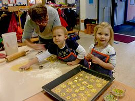 Gemäß dem Kinderlied „in der Weihnachtsbäckerei, gibt es manche Leckerei…“ wurde in der prot. Kita Lebensbaum mit den Kindern eifrig Teig ausgestochen, bepinselt und verziert. Ob Groß oder Klein, alle Kinder konnten nacheinander in der Adventszeit mit der Hauswirtschaftskraft Frau Eyer Plätzchen backen. Gekostet und genascht wurde das Gebäck dann zur Nikolausfeier und den Adventsnachmittagen. Die Kinder waren sich einig: die selbstgebackenen Plätzchen schmeckten „superlecker“!