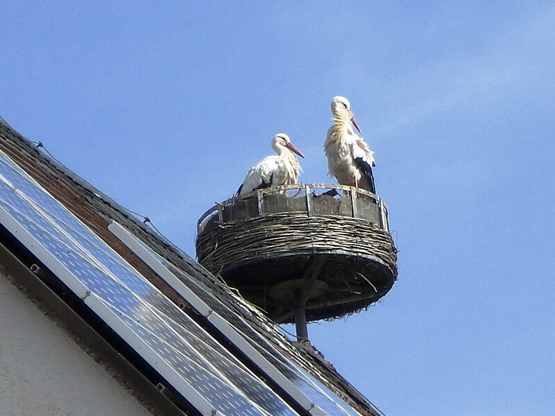 Eine weitere Besonderheit stellt das Storchennest auf dem Dach dar, von dem die "Aktion Pfalzstorch" ständig Bilder ins Internet stellt.