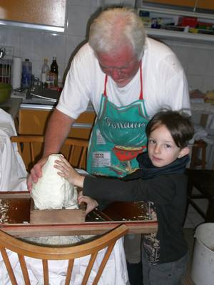Dort angekommen zeigte er uns in welchem schweren Topf das Sauerkraut gären muss. Und der Topf war wirklich sehr schwer, denn wir durften mal den Deckel anheben und allein der war schon fast nicht zum Heben.