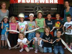 Am Freitag, den 06. Juni 2014 machten sich zwölf Schulanfänger auf dem Weg zum Feuerwehrhaus in Bellheim. Nach einem kleinen Film und einer Einführung in verschiedene Gefahrenquellen im Haushalt durften wir uns die Feuerwehrautos ansehen. Wir wissen jetzt, wofür man eine Schere und einen Spreitzer braucht und wie lange der Schlauch ist. Es war spannend im Feuerwehrauto zu sitzen und zu erfahren das hier jeder Platz für bestimmte Funktionen vorgesehen ist.