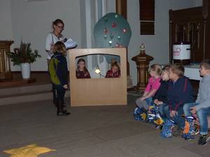 Legebilder, Kostüme und Instrumente zeigten uns, mit welchen vielfältigen Mitteln die Kleinen hier die Geschichten rund ums Kirchenjahr kennen lernen und selbst erleben.