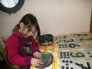 Die Vorbereitungen für das letzte Abendmahl übernahm eine Gruppe von acht Kindern. Gemeinsam überlegen sie, was man für ein Fest benötigt und kümmern sich weitgehend selbst um die benötigten Materialien. So gestalten sie eine Tischdecke mit Handabdrücken, besorgten Blumen, gestalteten bunte Perlenketten zur Tischdekoration und baten die Erzieherinnen sich um das Brot und die Trauben zu kümmern.