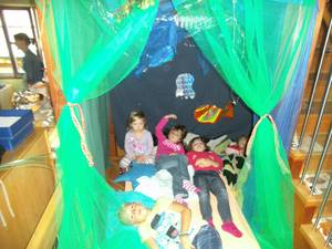 In gemütlicher Atmosphäre können die Kinder hier ihrem Bedürfniss nach Ruhe und Entspannung nachkommen.