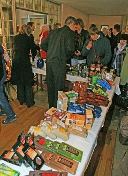 Gisela Walter und Heike Herold-Renz bieten etwa zweimal im Jahr beim Kirchenkaffee im Anschluss an einen Gottesdienst verschiedene fair-gehandelten Produkte an.