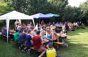 Entspannt bei bestem Sommerwetter haben Konfirmanden und ihre Eltern am Albert-Schweitzer-Haus gegrillt. Gerne haben einige Eltern den Abend organisiert und jeder brachte etwas zum gemeinsamen Salatbuffet mit.