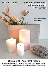 Zum Corona-Gedenktag folgen wir einer Anregung von Bistum und Landeskirche und laden in ökumenischer Verbundenheit am Sonntag, den 18. April um 18.00 Uhr zu einem Abendgebet am Bildschirm ein.