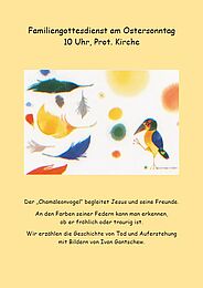 Wir begegnen in diesemGottesdienst „Rocko, dem Propellervogel“. Seine neue Technik fasziniert die anderen Vögel so sehr, dass sie am Ende ihren Charakter verändern. Das zerstört ihr Zusammenleben. Kurz bevor es zu spät ist, kriegen sie...