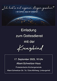 Am Sonntag, den 15. September, findet um 10.00 Uhr in der Prot. Kirche Limburgerhof der nächste "Kreuzbänd-Gottesdienst" statt. Er steht unter dem Motto "Im Rauschen dieser Zeit". Es wird um die Unruhe unserer Zeit gehen, um die immer...
