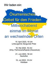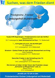 Zusammen mit der Prot. Kirchengemeinde Mutterstadt laden wir in der Ferienzeit zu einer Gottesdienstreihe ein, die den Frieden zum Thema macht. Jeder Sonntag hat sein eigenes Thema und wird in der Regel einmal in Limburgerhof und einmal in...