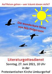 Am Sonntag nach dem Mittsommertag (24. Juni) laden wir ein zu einem schwedisch inspirierten Literatur-Gottesdienst mit Texten aus Selma Lagerlöfs Klassiker „Nils Holgerssons wunderbare Reise durch Schweden“: Sonntag, 27. Juni, 10 Uhr, Prot....