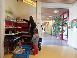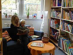 Hier stehen Eltern und Kindern eine Vielzahl an Büchern und Spielen zum Ausleihen zur Verfügung. Ein Angebot, das von vielen Familien gerne genutzt wird.