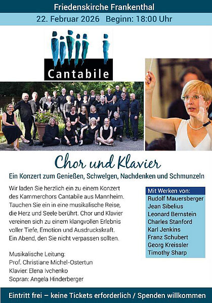 Cantabile, Konzert mit Chor und Klavier am Sonntag 22.02.2026 in der Friedenskirche