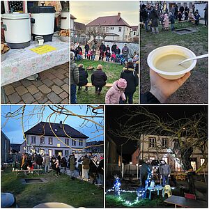 Die Pädagogischen Fachkräfte der Kita hatten für leckere Kartoffelsuppe, Brot, Glühwein und Glühpunsch gesorgt, Eltern und Großeltern hatten beim Aufbauen, Schmücken und Abbauen geholfen, so dass im Garten der Kita ein schönes Fest mit guter Stimmung, vielen netten Begegnungen und Gesprächen stattfinden konnte.