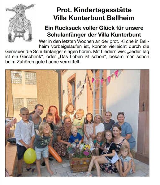Bei herrlichem Wetter trafen sich die Familien und Erzieherinnen der Kita Villa Kunterbunt vergangenen Samstag unter dem Motto " Der Wald und seine Tiere" am Schützenhaus in Bellheim. Auch Omas, Opas, Tanten, Onkel und natürlich viele Kinder waren dabei, so dass sich etwa 150 Personen gut gelaunt auf den Weg durch den Wald machten. Die Kita Kinder hatten Stoffraschen eingepackt, in denen "Schätze des Waldes" gesammelt werden sollten.