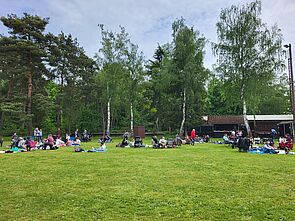 Mittelpunkt der Feierlichkeit war ein kleines Feuer, das durch die Wärme und das flackernde Licht viel Gemütlichkeit verströmte. Bei Speis und Trank spielten die Kinder und die Erwachsenen genossen das ausgelassene Beisammensein.