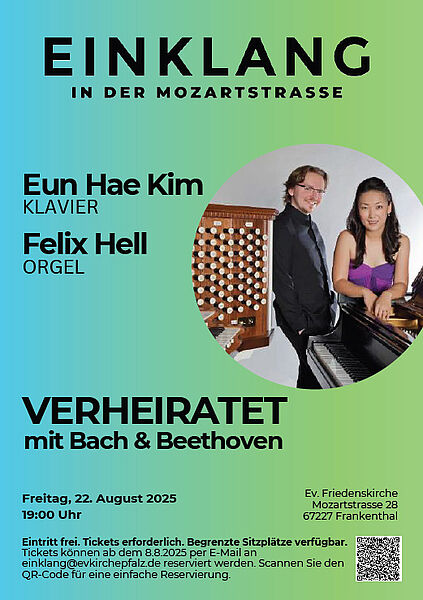 Die nächste Gelegenheit, den Flügel im Konzert zu erleben, ist am Freitag, den 22. August 2025 um 19:00 Uhr. Unter dem Titel „Verheiratet mit Bach & Beethoven“ gestalten wir, diesen besonderen Abend gemeinsam mit Werken für Klavier und Orgel und viel Raum für musikalische Überraschungen.