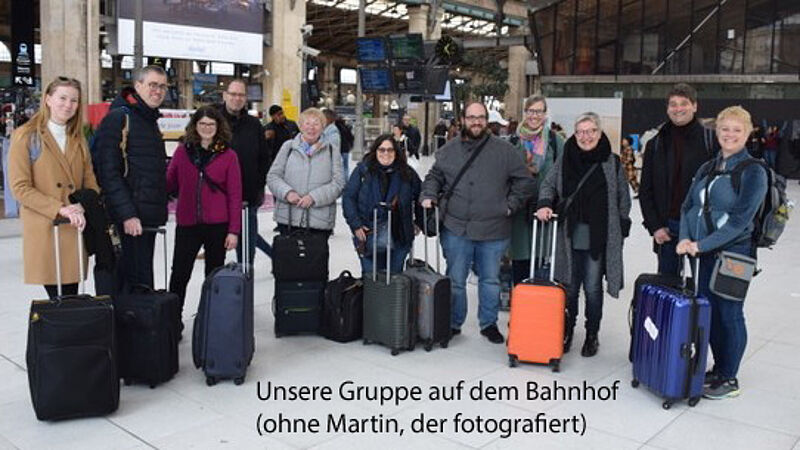 Die Reise war lang (über zwölf Stunden, mit der Bahn, über Paris). Zum Glück gab es diesmal nirgends Streiks (die eigentlich für letzten Oktober geplante Jubiläumsfeier hatte damals wegen massiven Streiks in London kurzfristig abgesagt und auf dieses Frühjahr verschoben werden müssen). Durch die lange Reise hatten wir aber reichlich Zeit und Gelegenheit zum gegenseitigen Kennenlernen und zum Austausch.