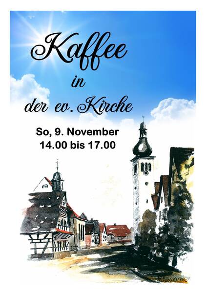 Am Sonntag, 9. November 2025 ist zwischen 14:00 und 17:00 Uhr wieder „Kaffee in der evangelischen Kirche“. Wenn Sie Zeit und Lust haben, kommen Sie vorbei und genießen Kaffee, leckeren Kuchen und gute Gespräche in der besonderen Atmosphäre unserer Kirche.