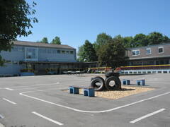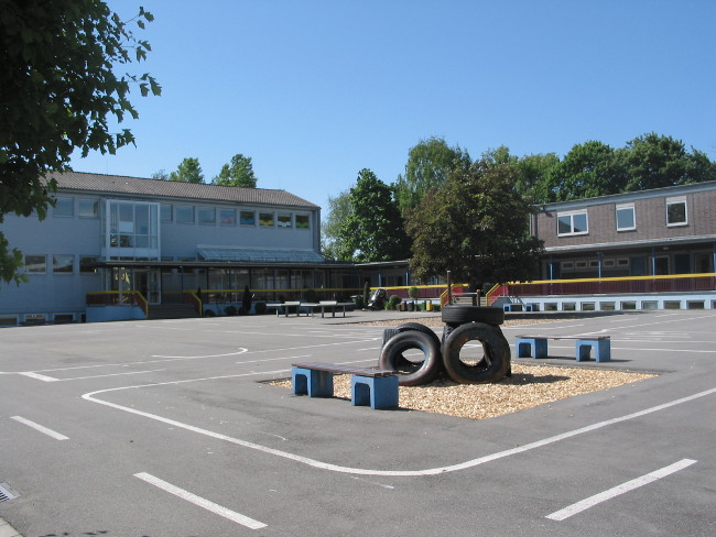 Wir nutzen hierfür den Pausenhof der Schule, sowie den weitläufigen Schulgarten, der mit seinen vielen Baumverschlägen optimale Bedingungen für ein intensives und fantasievolles Spielen bietet.
