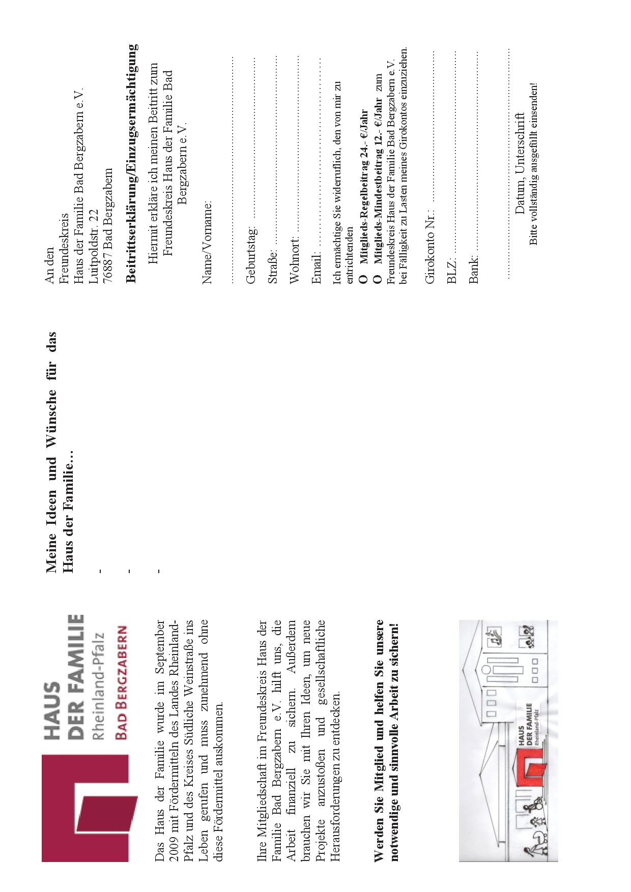 Der Freundeskreis Haus der Familie Bad Bergzabern e.V. wurde am 30. Januar 2013 gegründet, um die Arbeit des Hauses der Familie Bad Bergzabern zu unterstützen.